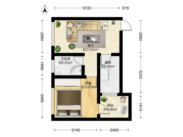 房屋戶型: 1 室1廳 1 廚1衛(wèi)