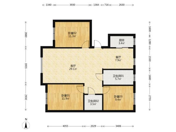 房屋戶(hù)型: 3 室2廳 1 廚2衛(wèi)